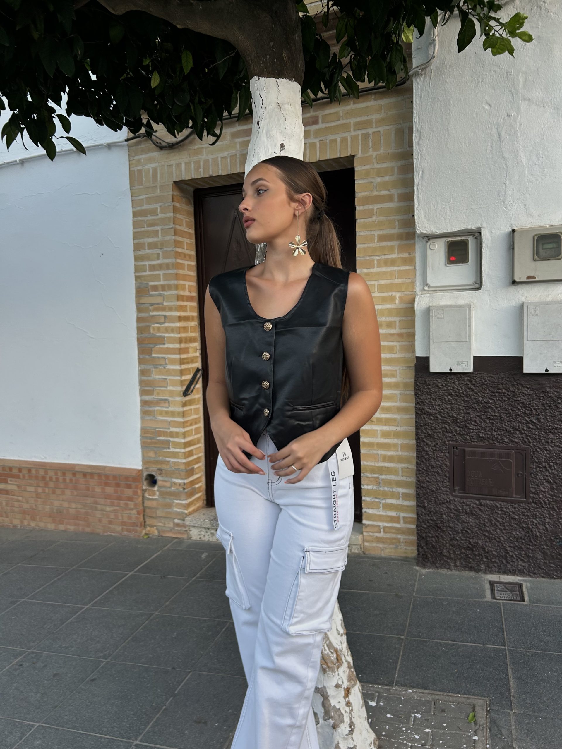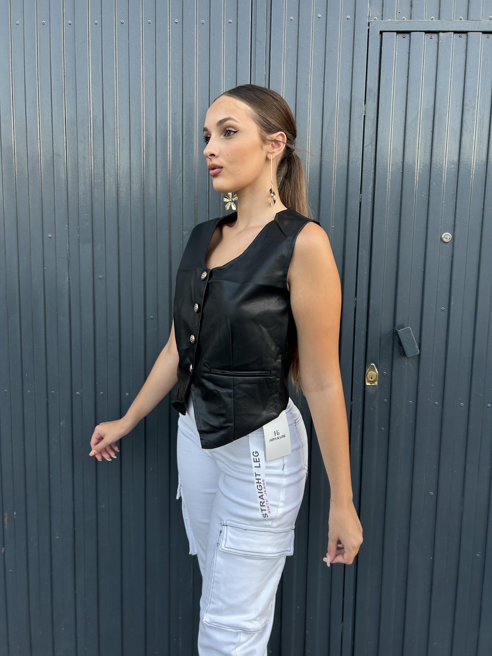 Chaqueta de polipiel con botones dorados
